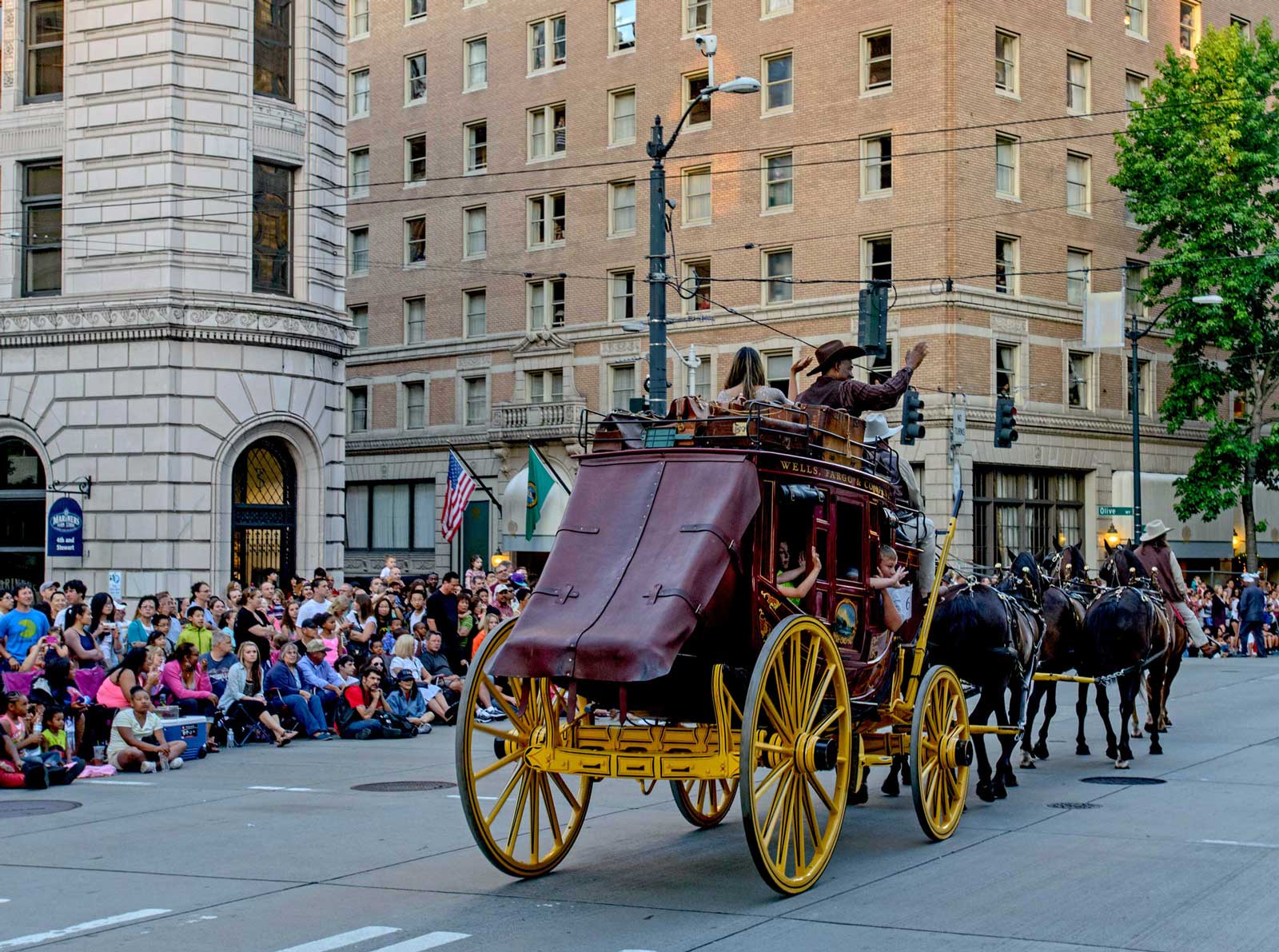 Stutz-Bearcat-NOW September 7, 2013 1600 × 1191 Stutz-Bearcat-NOW NOW: The Mayflower Hotel, rising here behind the stagecoach, opened in the summer of 1927. Across Olive Way, on the left, the stately Times Building was completed in 1916 and thankfully survives.