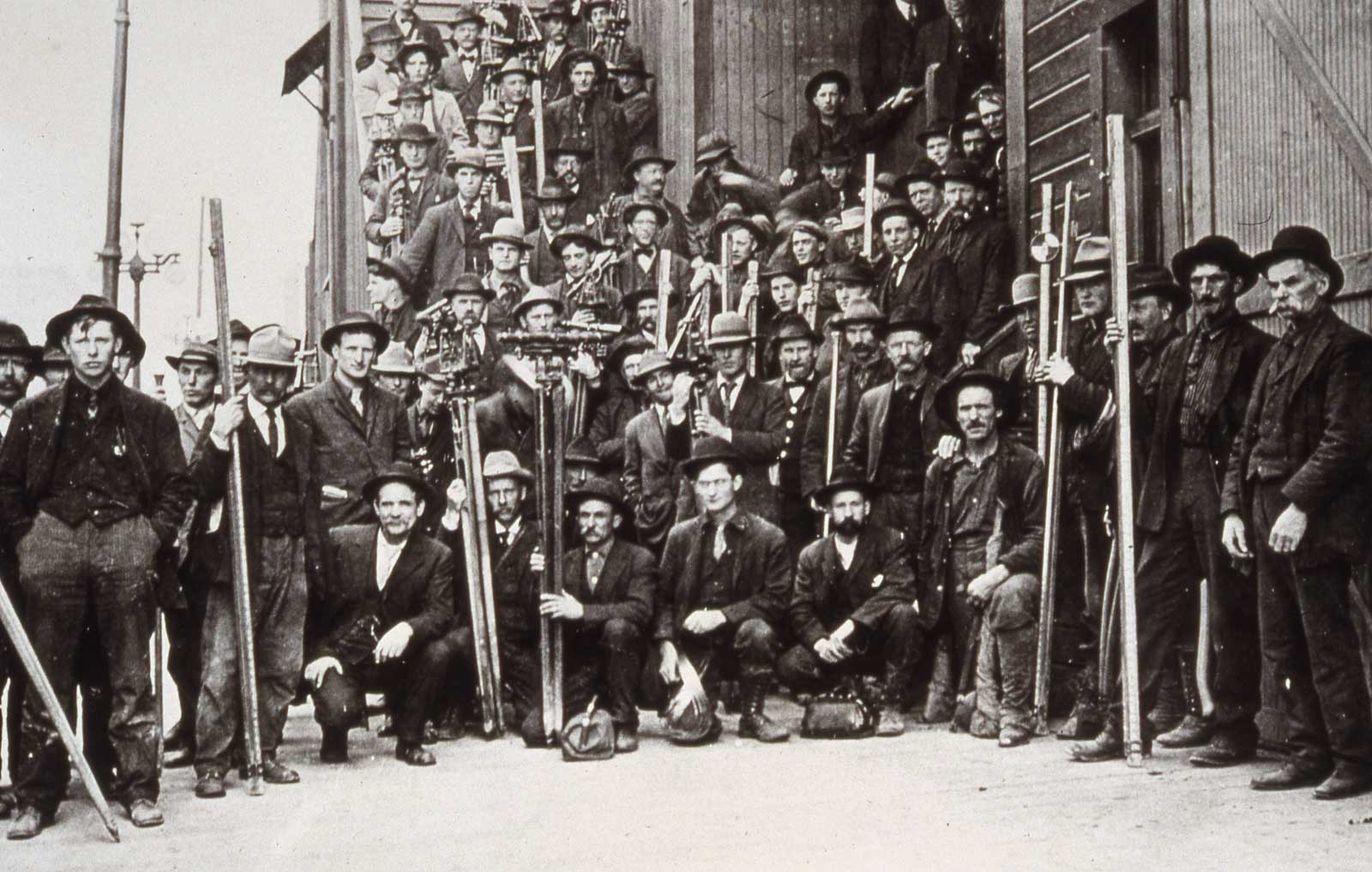 Surveyors-City-Hall-stepsWE May 1, 2011 1600 × 1017 Surveyors-City-Hall-stepsWE City survey crews pose at the front steps to City Hall. The city’s growth was extraordinary during the 19 years (1890 – 1909) that the Katzenjammer Castle service as city hall.