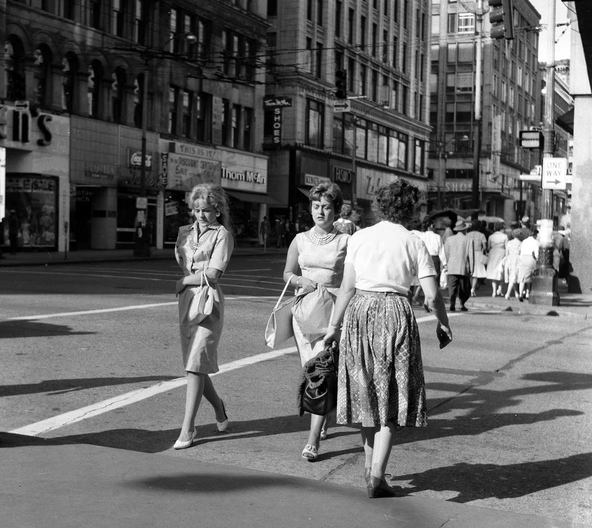 Looking now east on Pike with the extreme corner of MacDougall and Southwick – and part of its aluminum skin – upper-right. The photos just show are of an intersection still not “inflicted” with parking lots or garages at its northeast and southeast corners.
