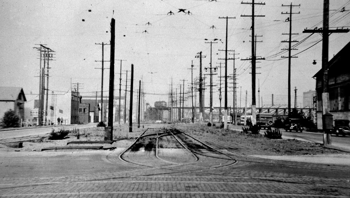 x-Spokane-st-lk-w-fm-1st-2-20-29WEB January 22, 2012 1200 × 678 x-Spokane-st-lk-w-fm-1st-2-20-29WEB Looking west on Spokane Street from First Ave. S. Feb. 20, 1929. The curving trestle where it turns from W.Marginal Way on to Spokane Street can be seen in the distance. (Courtesy Lawton Gowey)