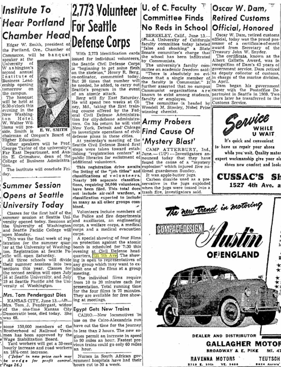 X ST-6-13-1951-Fire-Station-#1-as-Civil-Defence-quarters-WEB January 19, 2014 900 × 1173 X ST-6-13-1951-Fire-Station-#1-as-Civil-Defence-quarters-WEB A Seattle Times clipping from June 13, 1951 invites citizens to a free showing of films instructive in how to survive an atomic attack in, we presume, the Central Business District.